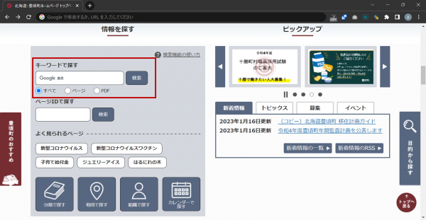 検索結果はgoogleが提供するものです。検索結果ページはGoogleのスポンサー企業の広告・リンクが表示される場合がありますが、町とは無関係です。