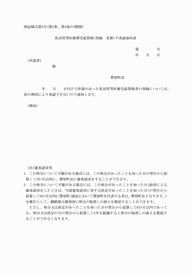 3 町長は、第1項の規定にかかわらず必要と認めるときは、他の書類を添付させることができるものとする。