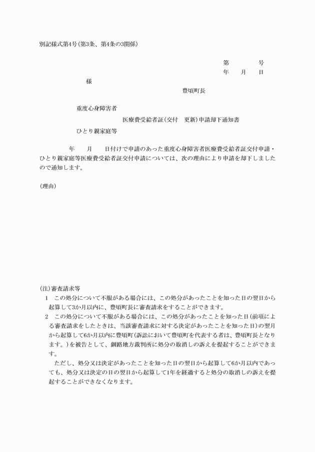 ○豊頃町重度心身障害者及びひとり親家庭等の医療費の助成に関する条例施行規則