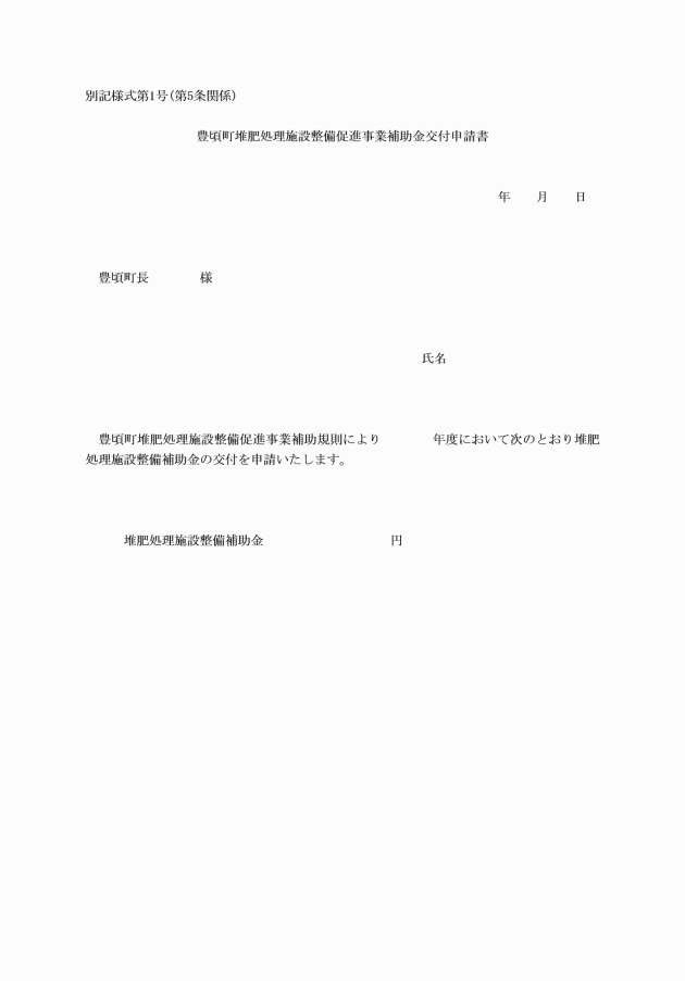 第5条 補助金を受けようとする者は、次に掲げる書類を町長に提出しなければならない。ただし、豊頃町農業協同組合代表理事組合長(以下「農協組合長」という。)は、補助対象者の委任により一括申請することができるものとする。