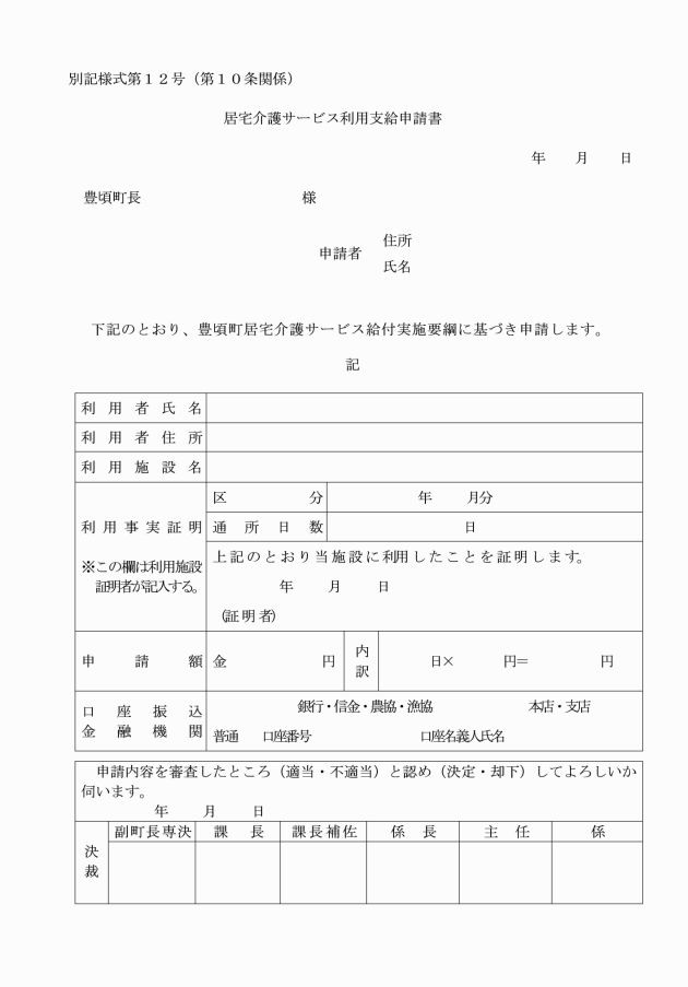 ○豊頃町居宅介護サービス給付実施要綱