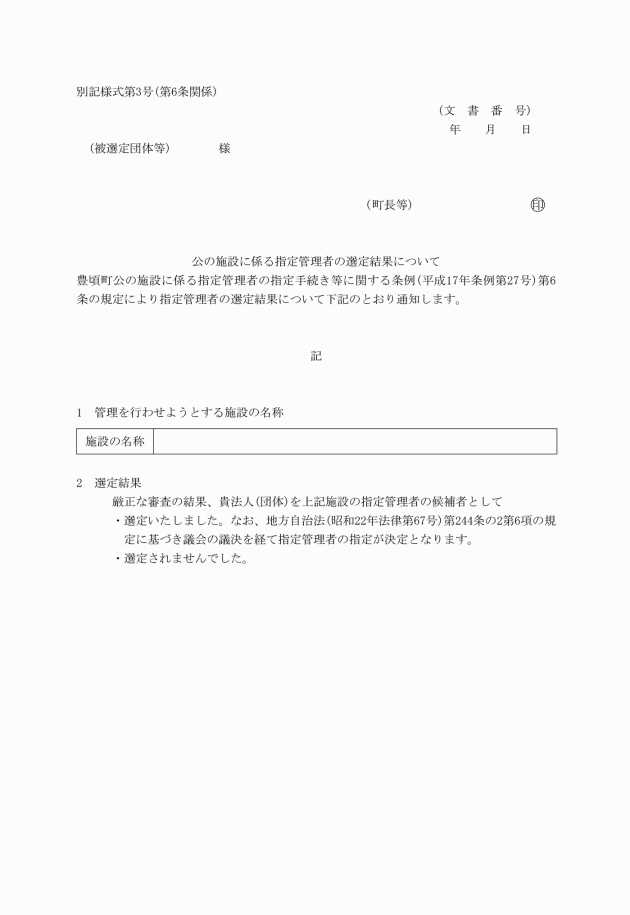 ○豊頃町公の施設に係る指定管理者の指定手続等に関する条例施行規則