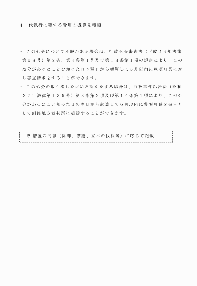 4 代執行法第5条に規定する代執行に要した費用の徴収は、特定空家等に関する代執行費用納付命令書(別記様式第28号)によるものとする。