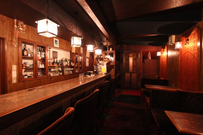 入口のドアを開けたら、奥行きのあるほの暗いオレンジ色の柔らかな照明に、少し昭和を思わせるレトロな空間が広がります。
